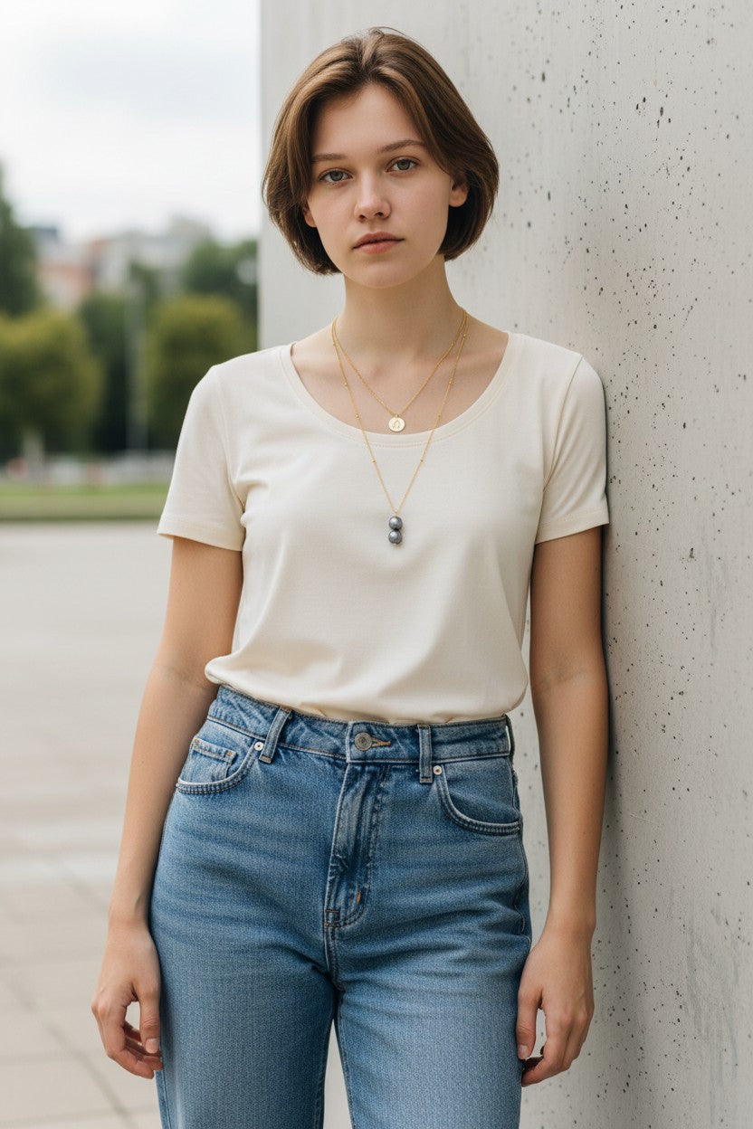 Collier personnalisé double chaîne Signe astrologique & Perles de Tahiti