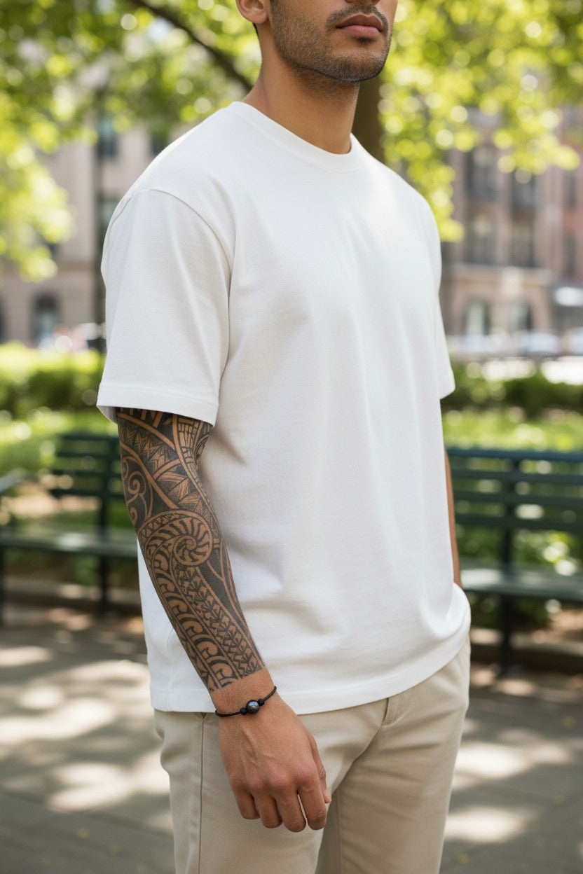 Type : Bracelet en cordon noir résistant avec une perle centrale fait main