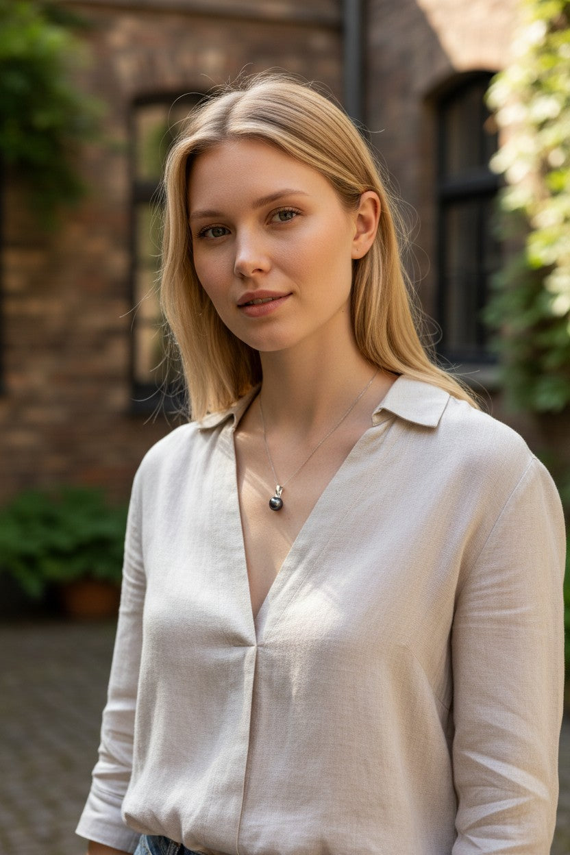 Collier PERLINEA avec perle de Culture d'Eau Douce noir - Diamètre 6-7 mm